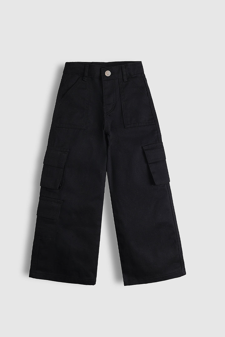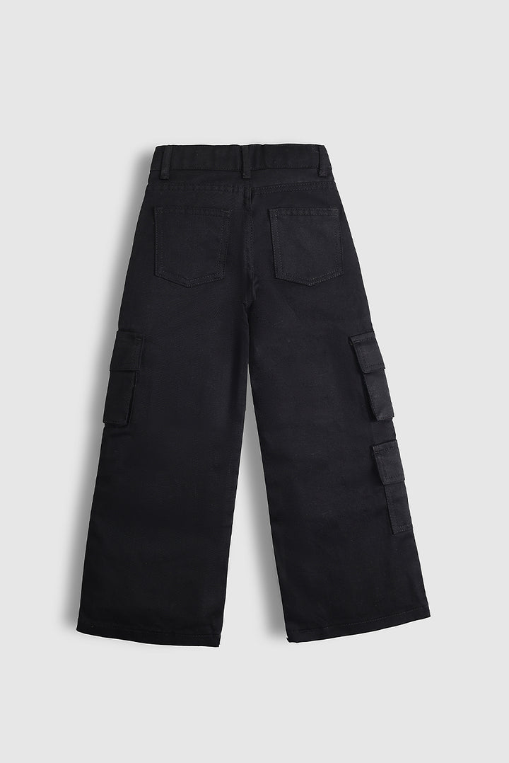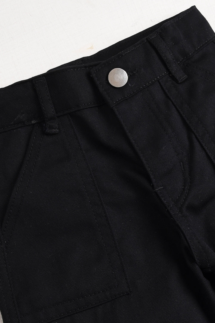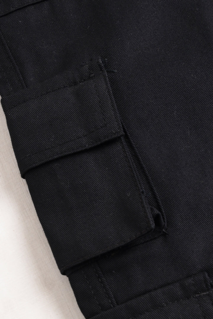Black Twill Cargo Baggy Pants (PW588)