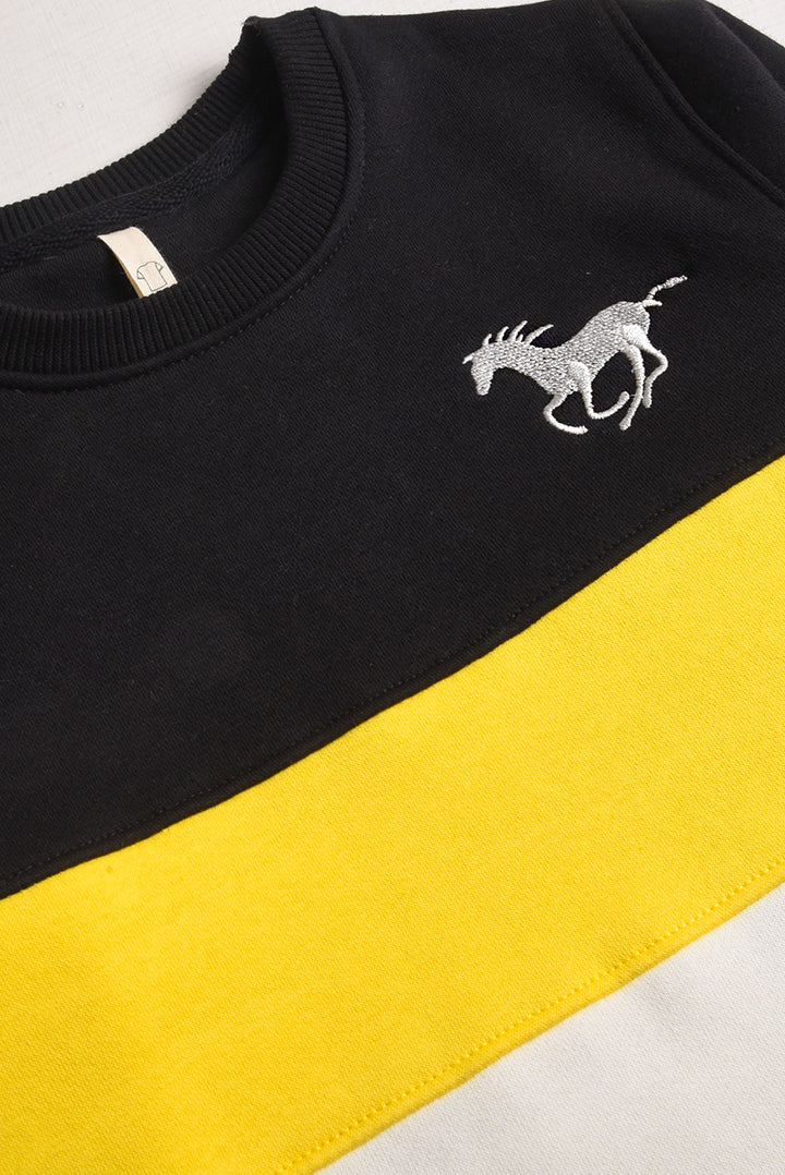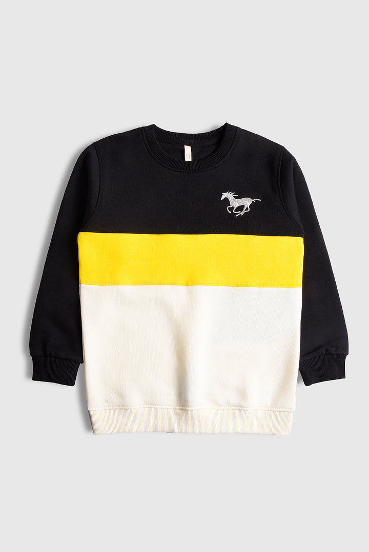 It’s bold, sporty, and full of motion—perfect for kids who love standout style. The horse embroidery adds a touch of energy to the clean color-block layout.